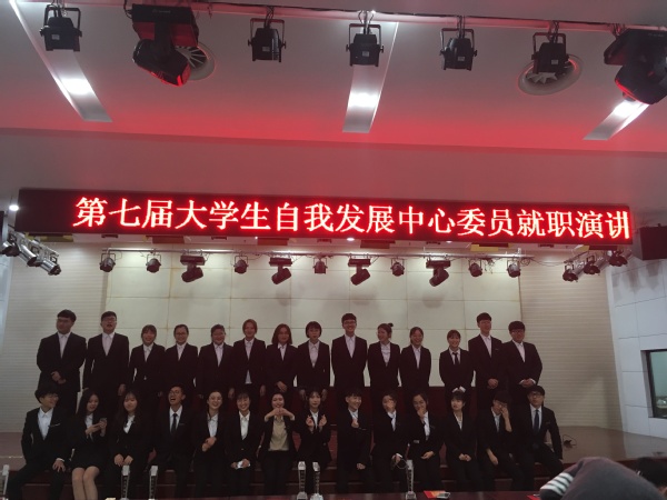 10月26日晚,学生处在四号报告厅召开第七届大学生自我发展中心委员就职演讲会,全校380余名学生代表出席了会议。