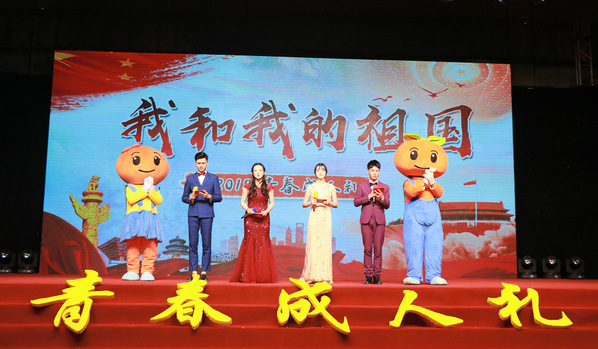 “2018青春成人礼”以“我和我的祖国”为主题,分为“爱国”、“励志”、“求真”、“力行”四个篇章。整场典礼以老师、学生的爱国励志情怀为主线,融合了舞蹈、歌曲、舞台剧、走秀、演讲等形式多样、精彩纷呈的节目,以寓教于乐的形式启迪2018级新生们热爱祖国、感恩祖国、报效祖国。