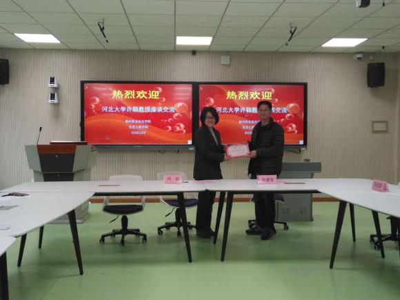 活动由信息工程学院副院长马文龙主持。信息工程学院院长余建军首先对许教授的到来表示欢迎,然后余院长为许教授颁发了创新团队指导专家聘书。