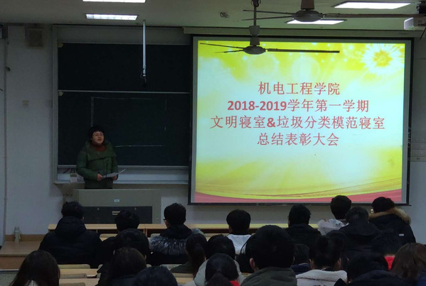 近日,机电工程学院在阶西2-1举行文明寝室和垃圾分类模范寝室总结表彰大会。机电工程学院党总支副书记范洪梅、学工办老师、获奖寝室学生及学生代表参加表彰大会。