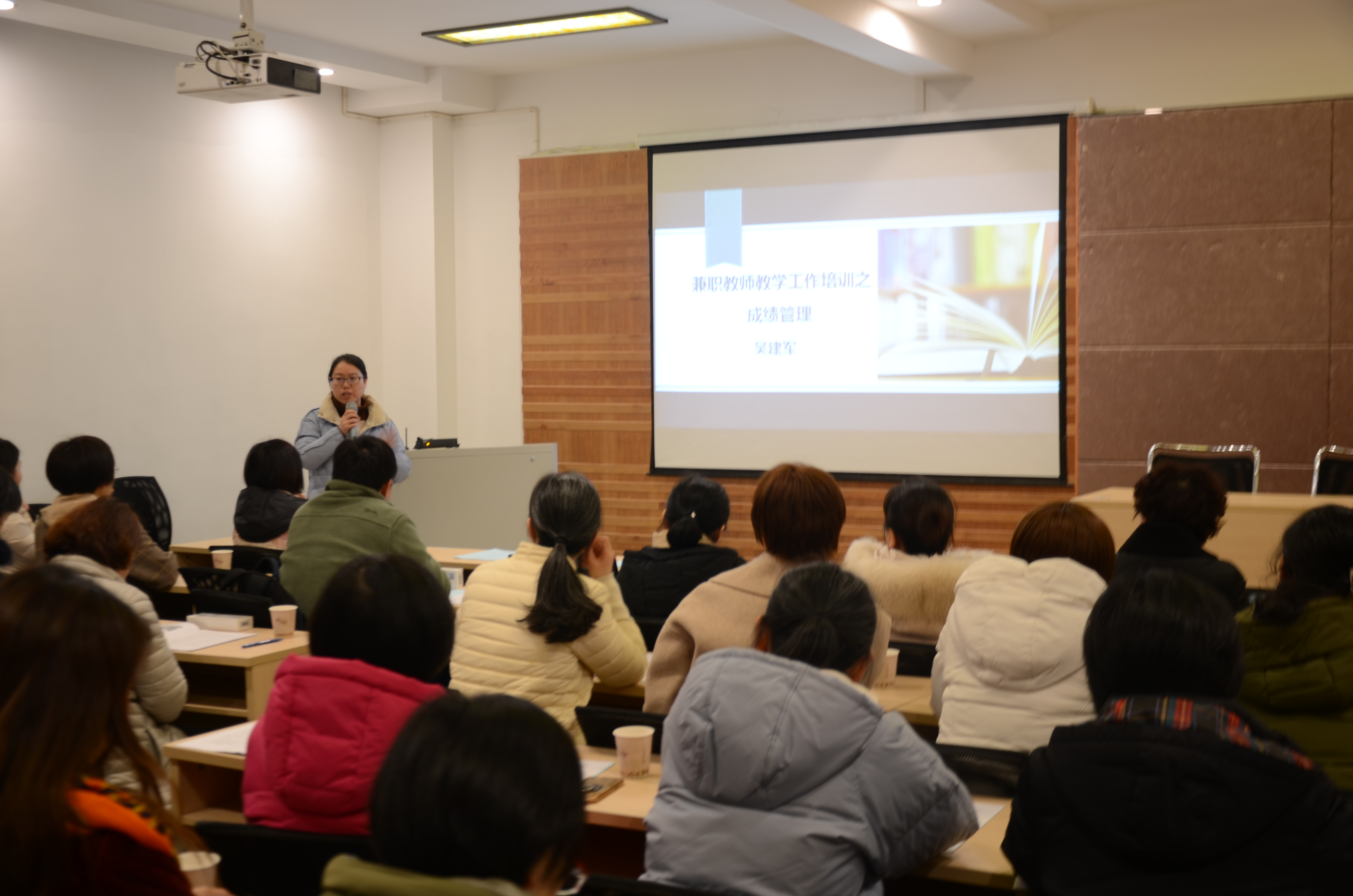 护理专业主任吴建军作《兼职教师教学工作培训之成绩管理》的报告,介绍了授课计划、实训计划的填写要求与规范,以及学生平时成绩管理的经验和思考;吴建芬老师作题为《SPSS的加权卡方检验》说课展示,并介绍了在使用超星平台进行信息化教学、提升教学成效的经验。