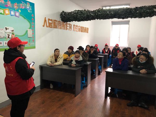 随后,“一缕阳光”协会的志愿者们如往常一样,到残疾人居家照料中心进行工疗和娱疗:给庇护中心的“憨豆儿”们讲故事,叫他们唱歌、学习、做手工等。