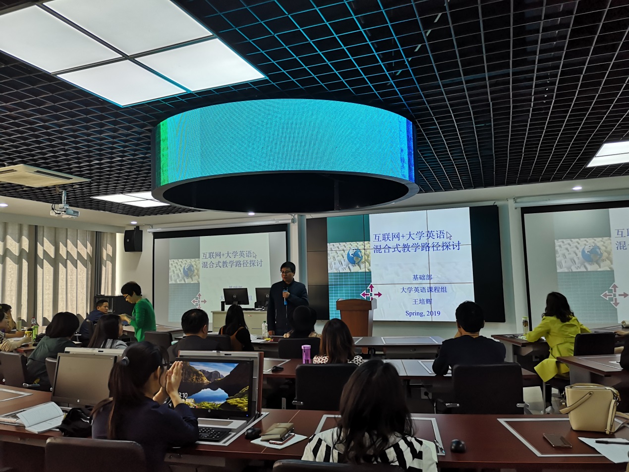 公共基础部王培辉老师以“互联网+英语教学路径探讨”为主题,介绍了建构主义学习理论和联通主义理论,分析了互联网背景下的英语教学实践路径,表达了对当代教师角色的反思。