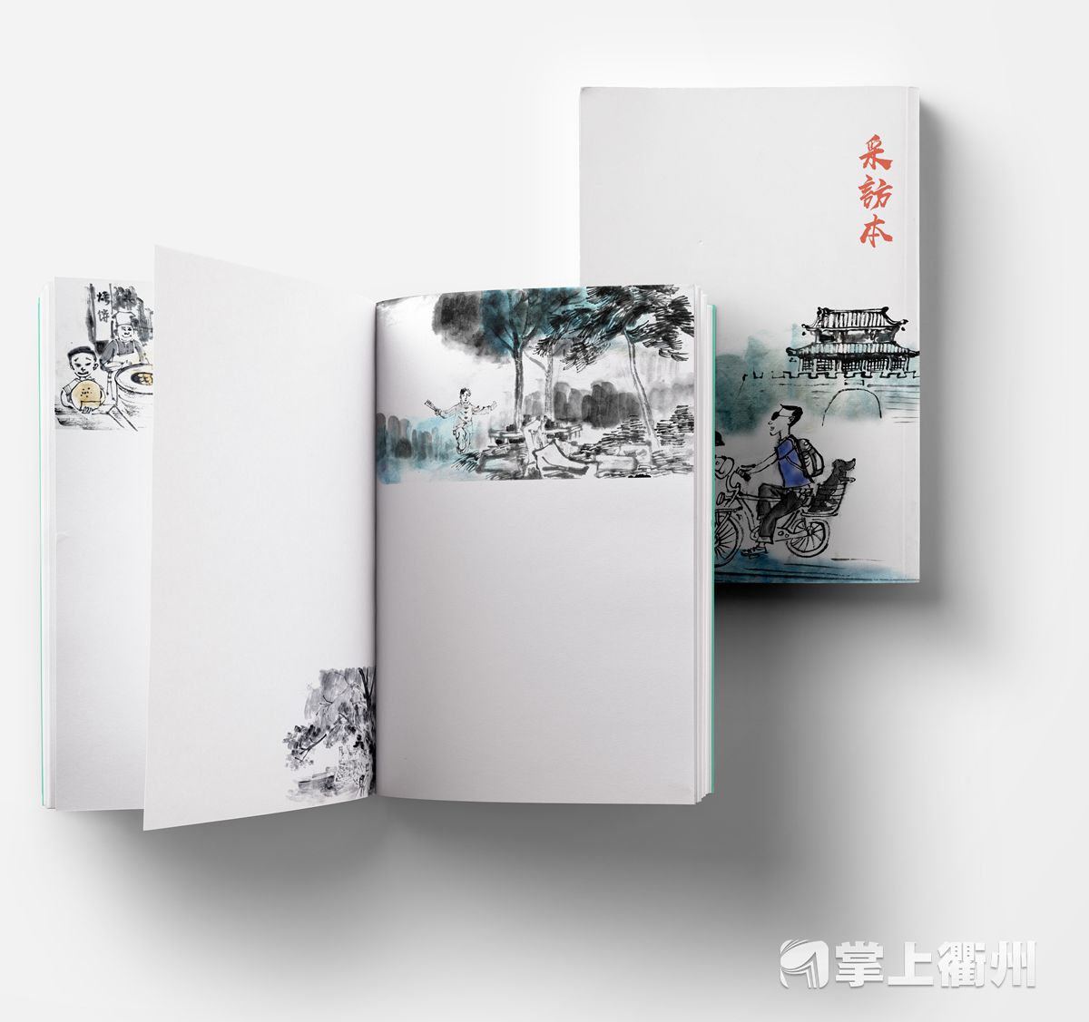 今天给大家介绍的,是潘宇老师为衢报小记者设计的采访本。他用国画将衢州“装”进了采访本中。