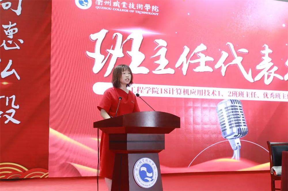 校优秀班主任,信息工程学院18计算机1、2班班主任刘晓平老师代表全体毕业班班主任作了题为《不忘初心,成就理想》的发言,希望即将毕业的同学们能在未来的日子里,做到“三不忘”,即:不忘初心、热爱祖国;不忘初心、包容有爱;不忘初心、积极追求。
