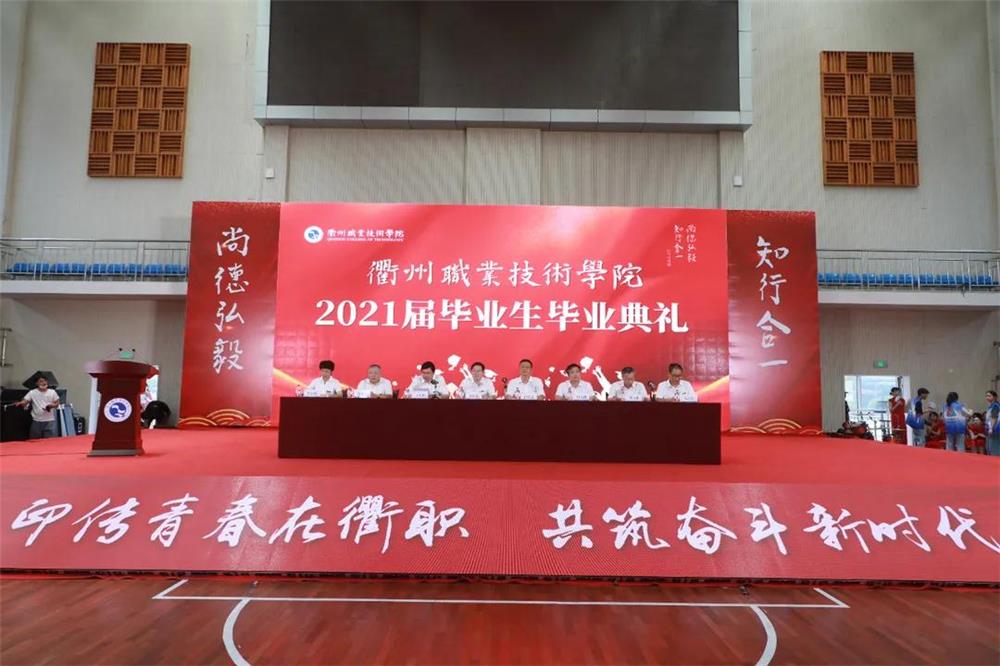 校长吕延文宣读《关于颁发2021届毕业生毕业证的决定》,全体校领导为毕业生代表颁发毕业证书并赠送了毕业纪念品。