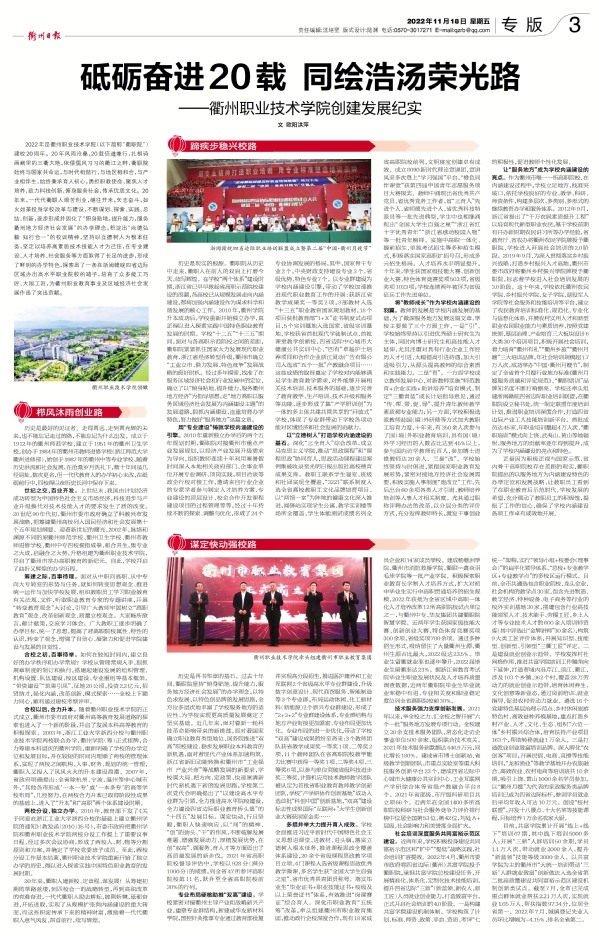 《衢州日报》:俯身贴地担使命 立德树人守初心:砥砺奋进20载 同绘浩汤荣光路