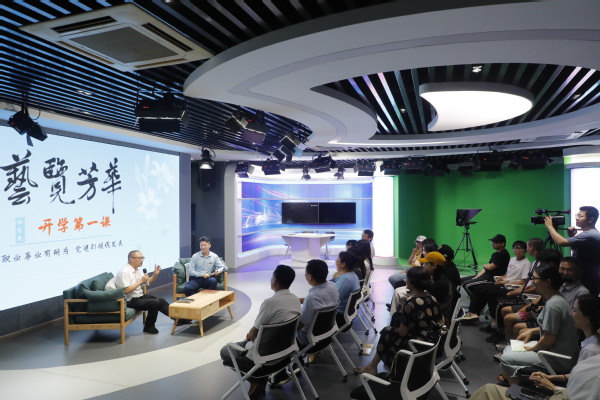 如何推进思政课程与课程思政同向同行,学院以“开学第一课”课程为试点,对思政课的教学方式进行了全面改革:采取“翻转课堂”模式,把传统的课堂授课改为访谈式节目,听众是学院全体教师和22级摄影专业的学生。黄炎培职业教育杰出教师奖获得者、艺术设计学院党总支书记许金友是这堂“思政课”的发起人,他也是节目的导演和特邀嘉宾。在现场,他结合自己的工作、生活经历,与师生们畅谈职业教育和党建工作的心得体会。节目组现场连线行业专家、学生和家长代表,围绕产教融合、热点话题、政策解读、就业指导、大学生活等方面谈想法、提问题、抓落实,嘉宾们观点碰撞、分享感受、金句频出,为在场师生呈现出一场思想的饕餮盛宴,也为新学年的教师工作开展提供了“新思路”,注入了“新动能”。青年教师雷雨田在课后直言,这样的形式比起传统的会议更加新颖,心态更轻松,个人的启发和收获良多。
