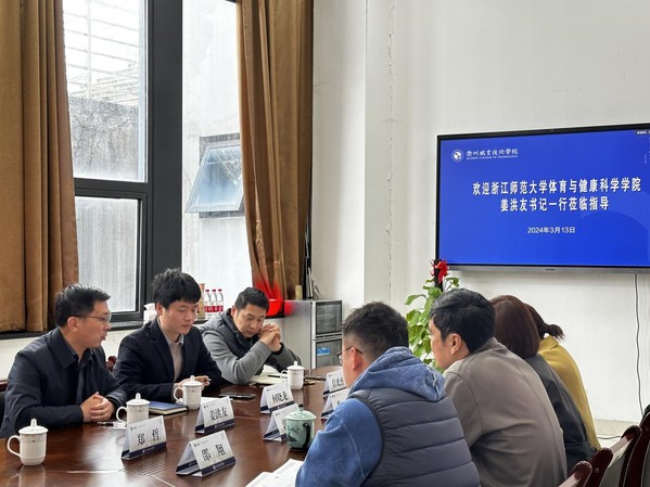 姜洪友从人才培养、社会服务等方面对浙师大体育与健康学院进行了介绍。郭大勇介绍了学校办学历程和学院发展历程,以及我院目前着力打造的“运动休闲专业群”和培养的特色体育运动队概况。