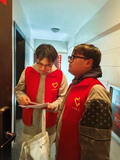 志愿者们走到社区的每一户居民家里,为他们耐心讲解垃圾分类的知识,以及防诈反诈的手段