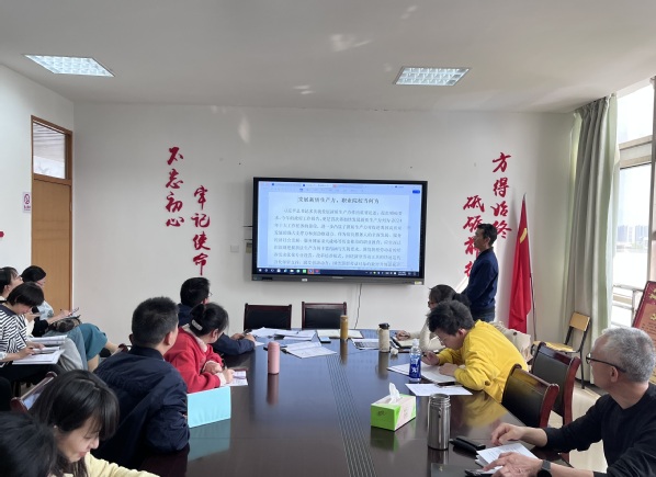 4月10日,公共教学部党支部开展四月主题党日活动,深入学习贯彻习近平总书记关于新质生产力的重要论述。全体党员参加学习,非党员教职工列席,会议由公共教学部党支部书记徐云青主持。