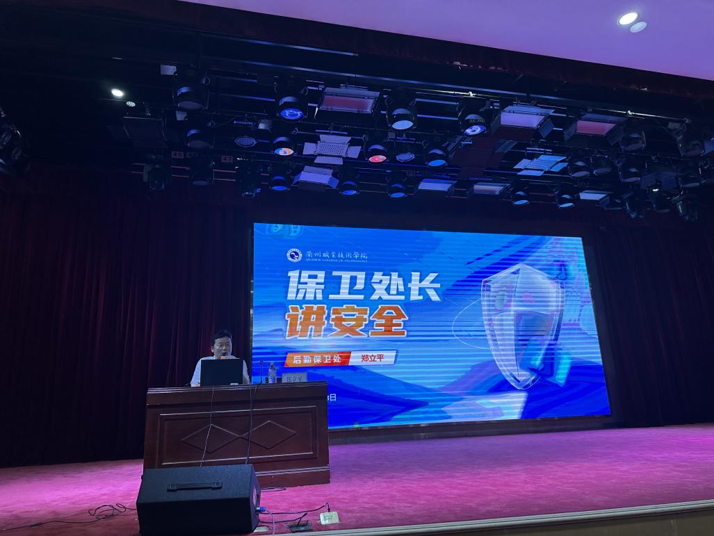 郑立平向大家介绍了“衢小勤”、“衢小安”,通报了近期校园内发生的各类安全问题,重点分析了几起治安、消防及电信诈骗案例,希望同学们一定要做好安全防范工作,特别要注意个人情绪调节与控制,防范同学之间因“小事”演变成“安全大事”。