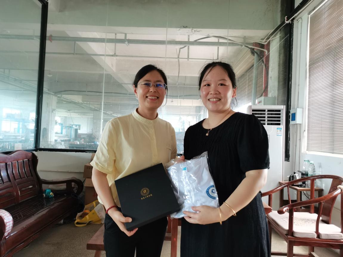 在校友张肖韫自主创办的企业台州杭泰线缆有限公司,谷明慧一行参观企业生产车间,了解企业生产经营情况,交流校友会台州站的组建情况。访谈中,谷明慧向张肖韫送上学校纪念册和文化衫,感谢她对母校工作的关注和支持,希望她能把自己的人生经历和创业经验传递给更多的学弟学妹。