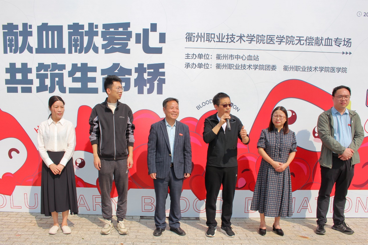 10月12日,由衢州市中心血站主办,校团委与医学院联合承办的“献血献爱心 共筑生命桥”无偿献血活动在我校举行,衢州市中心血站站长吴世泉,校团委书记徐天,医学院领导班子等出席现场仪式。