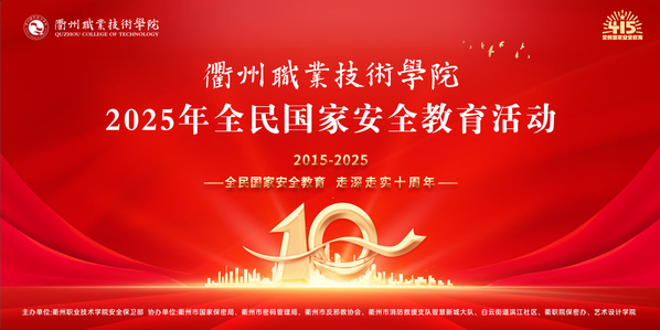 4月15日,在第十个全民国家安全教育日之际,学校联合衢州市国家保密局、密码管理局、市反邪教协会、消防救援支队智慧新城大队、城西派出所及白云街道滨江社区等6家单位及校保密办、艺术设计学院,以“全民国家安全教育·走深走实十周年”为主题,面向全校师生开展沉浸式国家安全教育宣传系列活动,活动通过“理论宣讲+实践体验+数字传播”三维模式,推动总体国家安全观入脑入心。